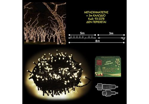 100 Λαμπάκια LED ΛΕΥΚΑ Εξωτερικά Επέκταση L.V.(Δεν περιέχεται ο μετασχηματιστής) Xmasfest 1132396