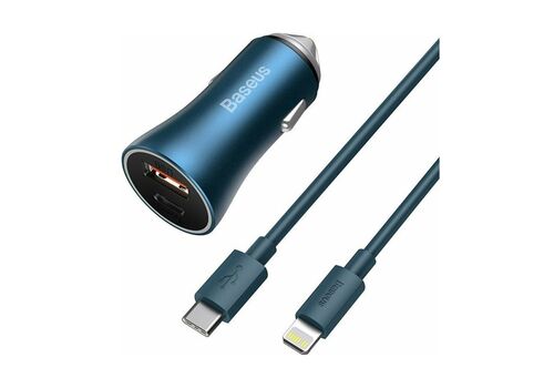 Baseus Car Charger Golden Contactor Pro Dual Quick Charger (with Type-C - Lightning 1m Blue) 40W blue (TZCCJD-03) (BASTZCCJD-03)