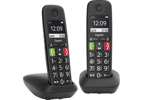 Gigaset E290 Duo Ασύρματο Τηλέφωνο Set για Ηλικιωμένους με Aνοιχτή Aκρόαση (GGSE290DUO-BK)