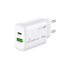 MediaRange 25W GaN Fast Charging Adapter (EU-Plug), 1x USB-C and 1x USB-A, USB-C® Power...
