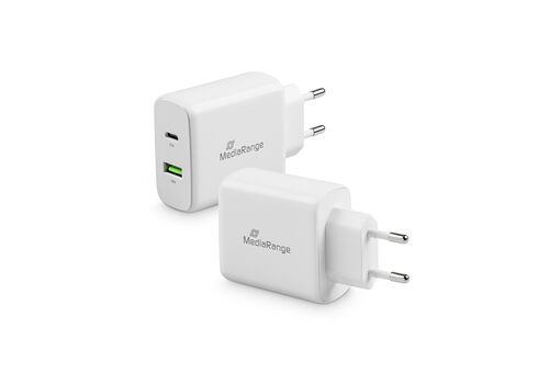MediaRange 43W fast charger with USB-A and USB-C output, white (MRMA113)