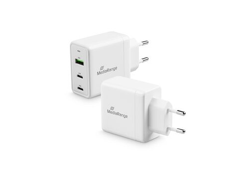 MediaRange 65W fast charger with USB-A and two USB-C outputs, white (MRMA116)