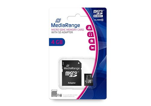 MediaRange Micro SDHC Class 10 With SD Adaptor 4 GB (High Capacity) (MR956)