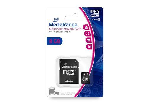 MediaRange Micro SDHC Class 10 With SD Adaptor 8 GB (High Capacity) (MR957)