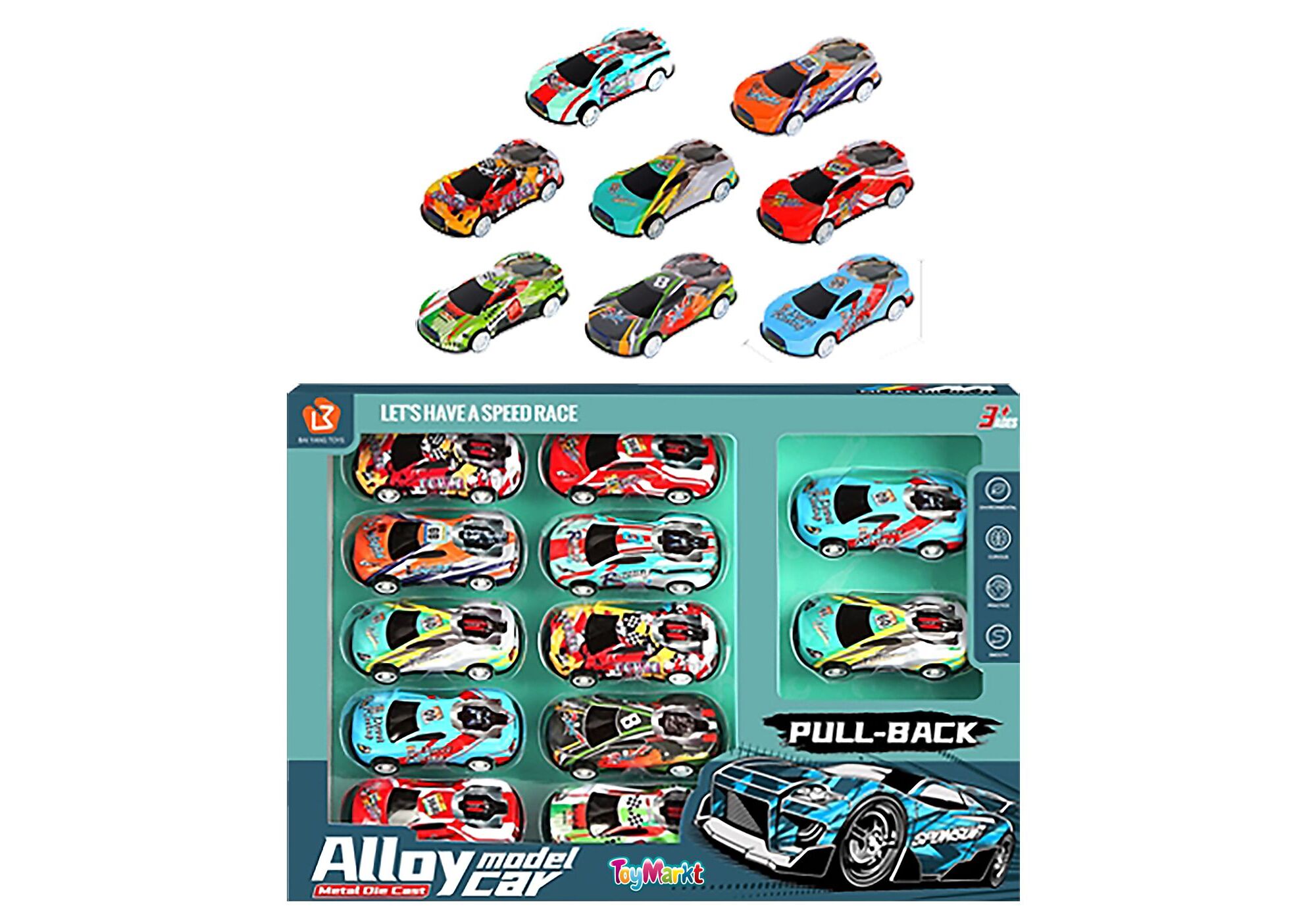 SET OF 12 METALLIC SPORTS 8cm PULL BACK