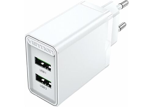 VENTION 2-Port USB (A+A) Wall Charger (18W/18W) EU White (FBAW0-EU) (VENFBAW0-EU)