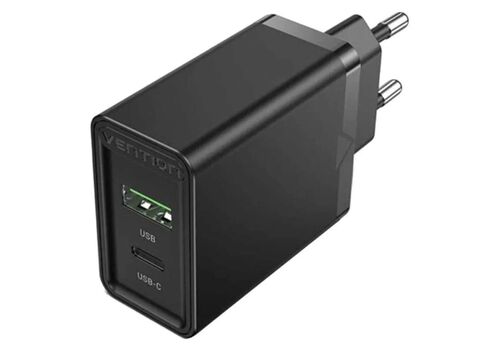 VENTION 2-Port USB (A+C) Wall Charger (18W/20W) EU Black (FBBB0-EU) (VENFBBB0-EU)