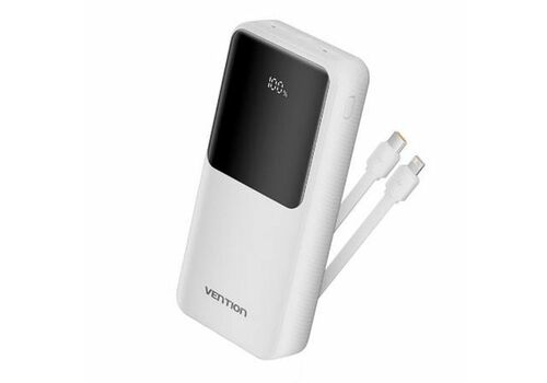 VENTION 20.000mAh Power Bank (Micro-USB + USB-C + USB-A + USB-A) with Built-In Type-C and Lightning Cables 22.5W White Led Display Type (FHPW0) (VENFHPW0)