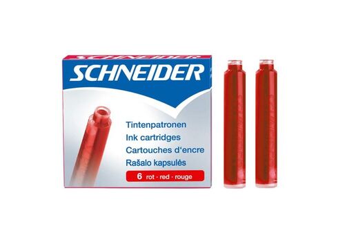 Αμπούλες μελάνης Schneider σε σετ των 6 τεμαχίων σε κόκκινο χρώμα. Είναι ειδικές για το γέμισμα του Στυλόγραφου σας. Είναι ιδιαίτερης ποιότητας με ομαλή ροή.