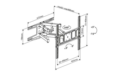 Επιτοίχια βάση ρυθμιζόμενη με τριπλό βραχίονα για τηλεοράσεις 32’’-75’’