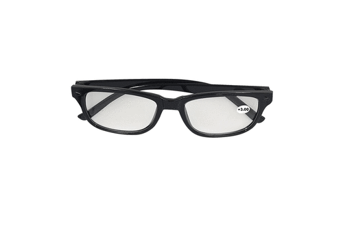 Unisex γυαλιά ανάγνωσης κατασκευασμένα από κοκκάλινο μαύρο σκελετό και +3.00 βαθμούς πρεσβυωπίας.