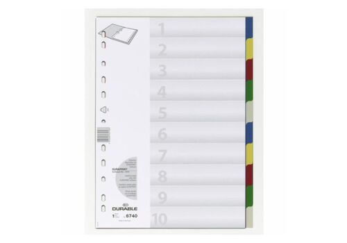 Διαχωριστικό κλασέρ ιδανικό για την οργάνωση του γραφείου σας. Είναι ένα σετ των 10 χρωμάτων για εύκολο διαχωρισμό των εγγράφων σας. Άριστης ποιότητας με υψηλή ποιότητα εξωτερικής επένδυσης και με αρίθμηση από το 1-10.