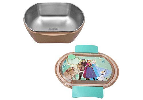 Φαγητοδοχείο από την εταιρεία Gim σε χρυσό χρώμα με πολύχρωμες λεπτομέρειες και σχέδιο από την ταινία Frozen της Disney.