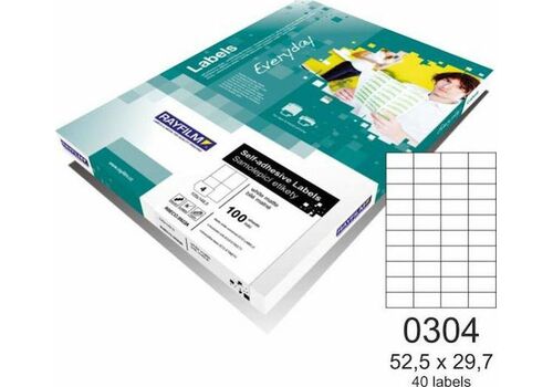 Ετικέτες αυτοκόλλητες εκτύπωσης Rayfilm Α4 (40 ετικέτες) 52.5x29.7mm 100φ.