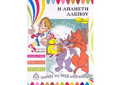 Η άπληστη αλεπού, 3 σε 1 εκπαιδευτικό βιβλίο: Χρωματίζω, κολλάω, γράφω: Με αυτοκόλλητα