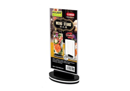 Θήκη πλεξιγκλάς από ακρυλικό υλικό, με βάση, περιστρεφόμενη . Είναι ανθεκτική και πολύ καλής ποιότητας. Είναι κατάλληλη για διαφημιστικά έντυπα, περιγραφές προϊόντων, τιμές, μενού εστιατορίων κ.α.