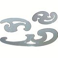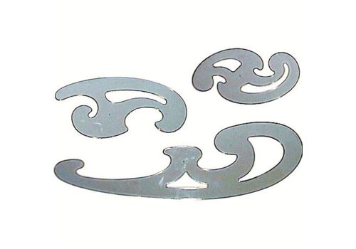 Καμπυλόγραμμα, σετ των τριών τεμαχίων. Είναι κατασκευασμένα από ανθεκτικό πλαστικό υλικό και επιτρέπουν τον σχηματισμό καμπυλών και ελλείψεων. Διαθέτουν πατούρα για σχεδίαση με μελάνι.
