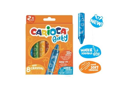 Κραγιόν κέρινα Carioca. Έχουν πολύ μεγάλο σώμα για ευκολία στη χρήση. Έχουν φωτεινά χρώματα και είναι απαλά στο γράψιμο. Διαλύονται στο νερό με τη χρήση πινέλου.
