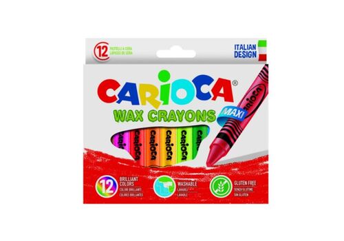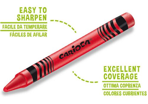 Κραγιόν κέρινα Carioca. Έχουν πολύ μεγάλο σώμα για ευκολία στη χρήση. Έχουν φωτεινά χρώματα και είναι απαλά στο γράψιμο. Διαλύονται στο νερό με τη χρήση πινέλου.