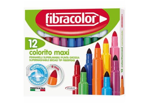 Μαρκαδόροι FIBRA COLORITO MAXI λεπτή μύτη 2,9mm (Σετ 12 χρωμάτων) - FIBRACOLOR