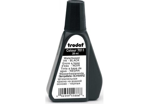 Trodat 7011 Μελάνι Σφραγίδας Μαύρο σε μπουκαλάκι 28ml με στόμιο ελεγχόμενης ροής, για οποιοδήποτε ταμπόν σφραγίδων Trodat. Ελέγξτε για την καλή κατάσταση του ταμπόν σας και το μελάνι της Trodat θα αναζωογονήσει το χρώμα αποτύπωσης της σφραγίδας σας. Η προτεινόμενη ποσότητα εφαρμογής είναι μια σταγόνα μελανιού ανά τετραγωνικό πόντο του ταμπόν σας. Ειδικό για σφράγισμα σε χαρτί. Στεγνώνει ταυτόχρονα με το σφράγισμα και έχει τέλειο αποτέλεσμα. Δεν ενδείκνυται για χρήση σε γυαλιστερό χαρτί, πλαστικά, γυαλί και μέταλλα.