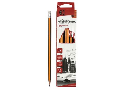 Μολύβι με γόμα ριγέ Πορτοκαλί-Μαύρο πακ=12τεμ Justnote 80131
