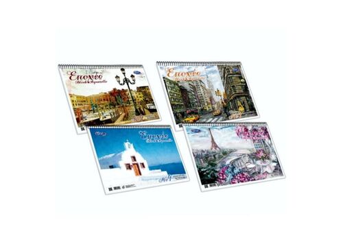 Μπλοκ ακουαρέλας Νο 3. Έχει εντυπωσιακό εξώφυλλο με απίθανα σχέδια και μαγευτικά χρώματα, που ζωντανεύουν την φαντασία κάθε επίδοξου καλλιτέχνη. Είναι κατασκευασμένο από ειδικό χαρτί που περιέχει βαμβάκι για την σωστή απορροφητικότητα της επιφάνειας του χαρτιού. Είναι κατάλληλο για πινέλα, ξυλομπογιές, νερομπογιές και λαδομπογιές.