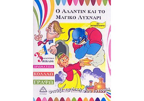 Ο Αλαντίν και το μαγικό λυχνάρι, 3 σε 1 εκπαιδευτικό βιβλίο: Χρωματίζω, κολλάω, γράφω: Με αυτοκόλλητα