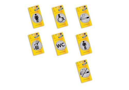Ετικέτες μεταλλικές με σήματα. Είναι κατάλληλες για χρήση τους σε γραφείο ή και καταστήματα.