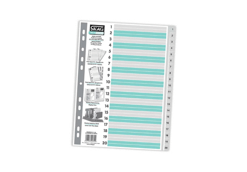 Πλαστικά Διαχωριστικά για Έγγραφα A4 με Τρύπες 20τμχ Eco αριθμητικά - Skag