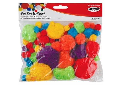 Πομ-πομ ρομ-ρομ meyco σετ 60τεμ. Διάφορα μεγέθη και χρώματα - MEYCO HOBBY