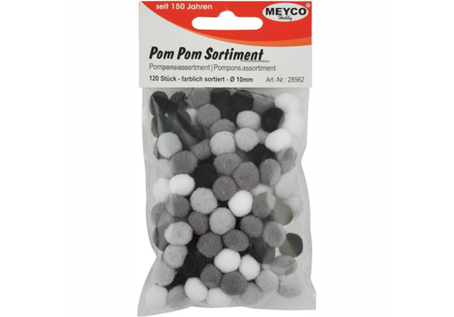 Πομ-πομ ρομ-ρομ meyco φ10mm 120τεμ. (λευκό- μαύρο- γκρι) - MEYCO HOBBY