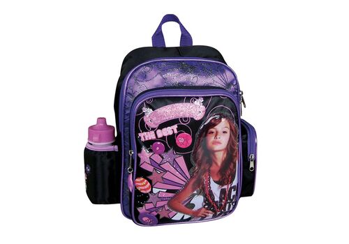 Τσάντα Πλάτης Νηπίου Antonella, δύο θέσεων με παγουρίνο και πλαϊνή θήκη με φερμουάρ, χρώματος μωβ.