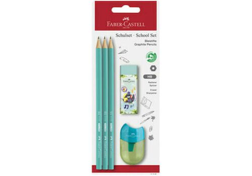 Σετ 5 με 3 Μολύβια HB - Ξύστρα και Γόμα Γαλάζια - Faber-Castell