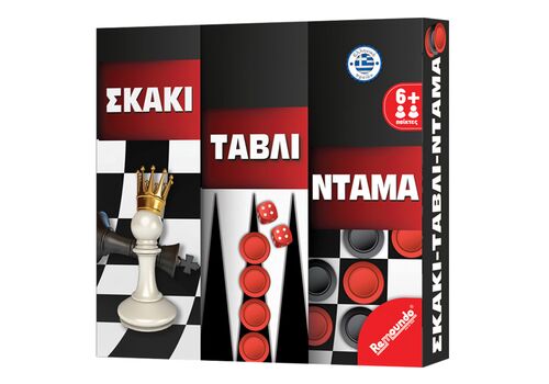 Τάβλι με σκακιέρα στην εξωτερική του πλευρά από την Remoundo, ιδανικό για τα αγαπημένα επιτραπέζια παιχνίδια στρατηγικής για δύο παίχτες. Επιπρόσθετα είναι κατάλληλο και για το επιτραπέζιο παιχνίδι ντάμα, το οποίο παίζεται με πούλια στην επιφάνεια της σκακιέρας.
