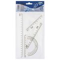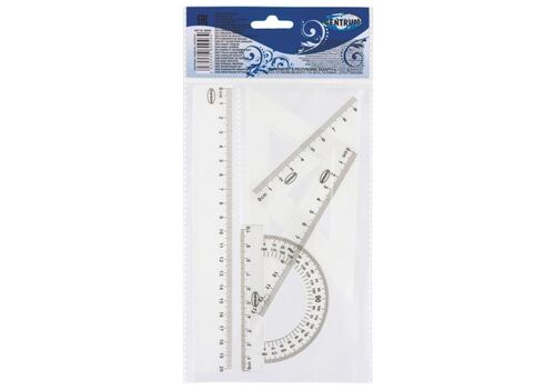 Σετ γεωμετρικών οργάνων με αρίθμηση. Η συσκευασία περιλαμβάνει έναν χάρακα, ένα τρίγωνο και ένα μοιρογνωμόνιο.