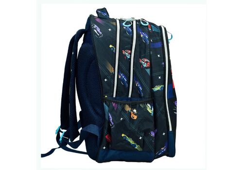 Σχολική τσάντα η οποία μπορεί να φορεθεί στην πλάτη, κατάλληλη για παιδιά δημοτικού της εταιρίας Gim με θέμα Hot Wheels.