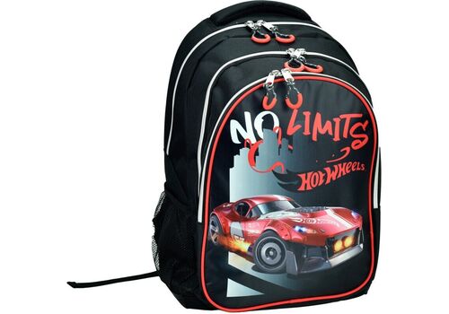 Σχολική τσάντα η οποία μπορεί να φορεθεί στην πλάτη, κατάλληλη για παιδιά δημοτικού της εταιρίας Gim με θέμα Hot Wheels.
