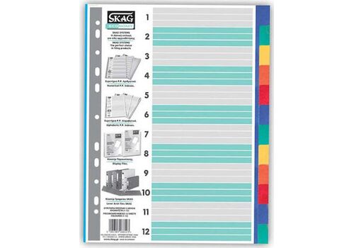 Χάρτινα Διαχωριστικά για Έγγραφα A4 με Τρύπες 12τμχ Economy χρωματιστά - Skag