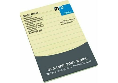 Χαρτάκια Αυτοκόλλητα Σημειώσεων Info 100 φύλλα Κίτρινο με ρίγες 10x15cm
