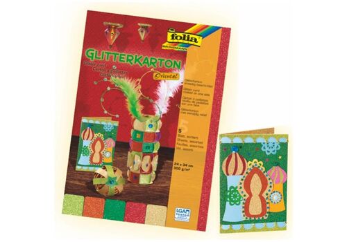 Χαρτί FOLIA GLITTER (24x 34 / 300gr) σετ 5 φύλλα - FOLIA